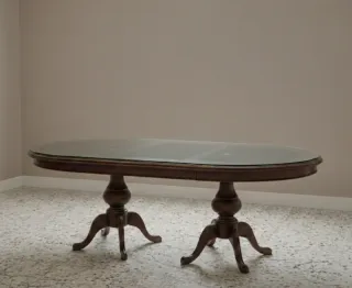 - Mesa clásica de madera oscura, ovalada, extensible y con patas talladas. Cristal incluido en el precio. Precio negociable. - Medidas: Cerrada: 166 x 90cm Abierta/ extensible: 240 x 90cm.