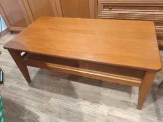 Mesa de centro de madera con un diseño moderno y funcional. Perfecta para tu salón. - Acabado en tono marrón cálido. - Estructura robusta y duradera. - Diseño extensible para mayor versatilidad. Extendida la altura es de 50 cm.