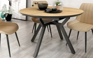 Mesa de comedor redonda extensible de 110.Puedes elegir en melamina de alta gama o chapada en roble natural Tambien en medida de 105 y 120,las 2 medidas con 1 extensible de +70cms ,quedando abiertas en 175 o 190.Altura 76 cms.Amplia gama de colores.Apertura suave,fácil y sincronizada. Gama alta y excelente calidad de un fabricante lider en el sector de sillas y mesas tanto a nivel nacional como europeo y oriente medio. Envio y montaje opcional 90€(hasta 15 km).