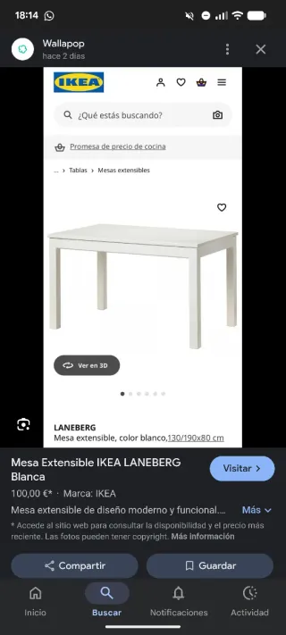 Mesa extensible NÄSINGE de IKEA. Amplía tu espacio fácilmente. - Medidas: 130/190x80 cm.