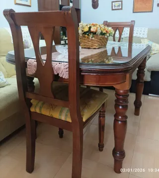 mesa de comedor de madera maziza ectensible con 6 sillas y cristales 160x90 estensible a 2 metros
