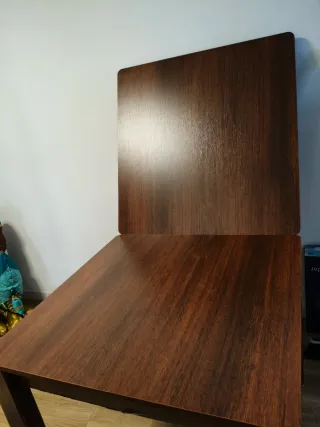 Se vende porque voy a cambiarme a una más grande. Medidas: - Sin extender: 90 cm (largo) x 40 cm (ancho) x 78 cm (alto) - Extendida: 90 cm (largo) x 80 cm (ancho) x 78 cm (alto) Características: - Tablero madera con acabado en imitación mármol. - Estructura de madera resistente.