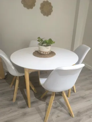 Mesa redonda blanca con 4 sillas