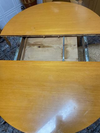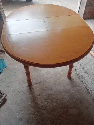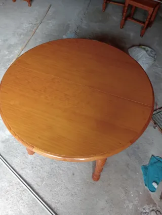 Mesa redonda de madera extensión.Medidas 1,08 y abierta 1,68 por 77 de altura es toda una pieza las patas no se quitan más mesas y cosas en mi perfil dispongo de furgoneta - Diámetro cerrado: 1,08 metros. - Diámetro extendida: 1,68 metros.