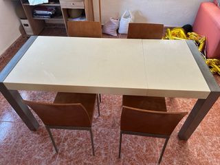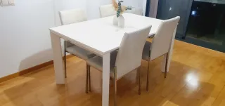 Conjunto de mesa extensible para comedor con cuatro sillas. 160x90 ( 206 abierta).