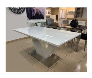 Elegante mesa de comedor con un diseño moderno y acabado brillante. Su superficie lisa y amplia la hace ideal para reuniones familiares o con amigos. - Acabado de alto brillo. - Diseño extensible para mayor versatilidad.