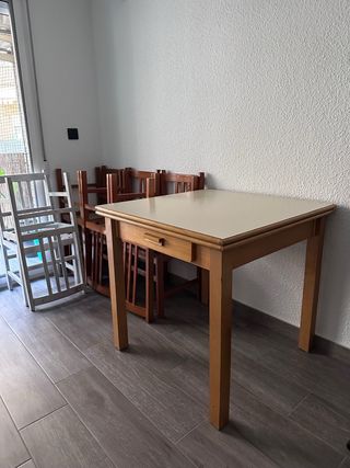 Mesa,sillas y mesa pequeña elevable. Madera maciza