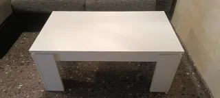 Mesa de centro extensible con un diseño moderno y elegante. Su superficie lisa y patas robustas la hacen un mueble práctico y duradero. - Acabado en blanco brillante. - Estructura de madera. - Cristal de seguridad.
