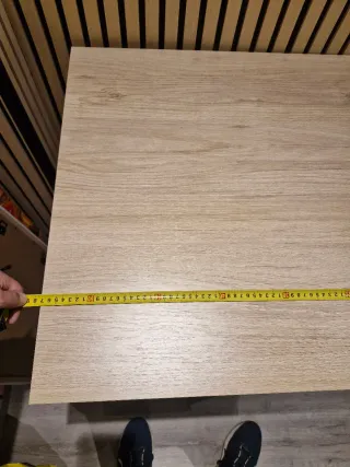Mesa de comedor con un diseño moderno y elegante. Extensible - Acabado en tono madera natural. - Patas con diseño angular. Medidas 67cm x 67cm y cuando se abre a 135cm Es nueva no se llegó a usar. Es pequeña, necesito un poco mas grande. SOLO ESTE FIN DE SEMANA 70 €. Urge venta