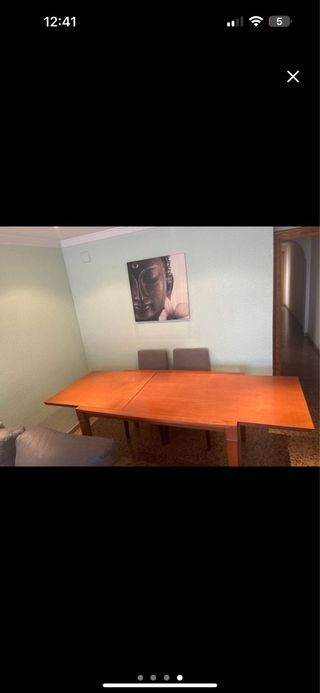 Elegante mesa de comedor extensible, perfecta para reuniones familiares o cenas con amigos. Su diseño se adapta a diferentes espacios. - Madera maciza - Sillas ya estan vendidas - Fabricada en madera de alta calidad. - Acabado en tono marrón cálido. - Mecanismo de extensión funcional.