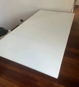 Mesa de comedor con un diseño moderno y funcional. Amplía tu espacio fácilmente. - Medidas cerrada: 70x105 cm - Medidas extendida: 140x105 cm -Altura: regulable de 38 a 73 cm Pequeñas marcas de uso en la superficie plegada. La extensible está impecable. Sólida y robusta, mecanismo y rueda en perfecto estado. Sólo para recoger en Gijón.
