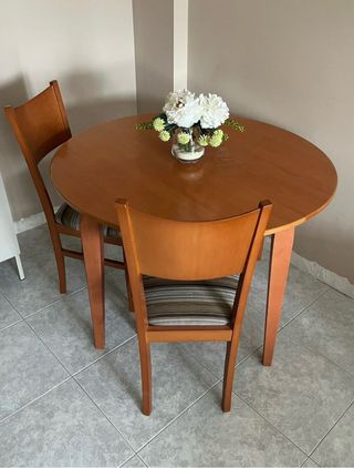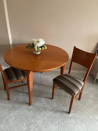- Mesa de madera extensible medidas cerrada 109/109 , está en perfecto estado, madera maciza las sillas están vendidas ( no están incluidas ) tenemos transporte aparte