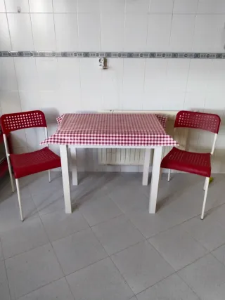 Mesa de comedor extensible , plegable , abatible en estado perfecto. Se ha usado muy pocas veces en una segunda residencia Medidas: con las dos alas cerradas 78 x 66 cm , con las alas abiertas 78 x 118 cm Altura 74 cm Nueva costó 199 euros Se vende en 70 euros no negociable Puedo incluir dos sillas a juego con cojines que tengo anunciadas m mi perfil, en ese caso el precio sería de 90 euros todo Posibilidad de recogida en Majadahonda o en Las Matas (Madrid)