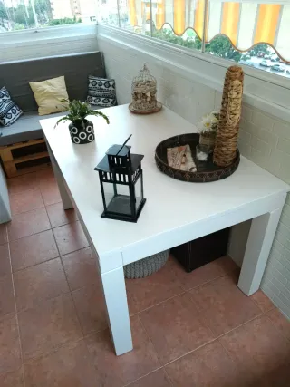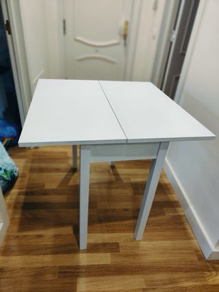 Mesa de comedor de Ikea con un diseño moderno y funcional. Su acabado blanco le da un toque luminoso a cualquier espacio. - Estructura de madera. - Acabado en color blanco. - Extensible de 140cm a 220cm, 74 alto, 84 ancho. En buen estado, pequeños desperfectos en dos patas (ver fotos)