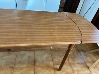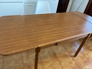 Mesa comedor extensible en buen estado de conservación. Alto: 76,5 Ancho: 90 Largo sin abrir: 1,40 Largo abierta: 2,50 Muy fácil de montar.