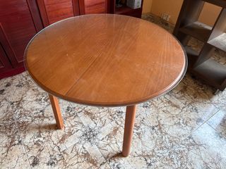 Mesa redonda antigua extensible de madera