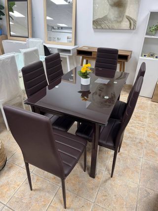Vendo pack de mesa extensible y 6 sillas marrones. Todo es nuevo a estrenar, se entrega en su embalaje original de fábrica para proteger cada pieza. Incluye todo lo necesario para un montaje sencillo y rápido. Diseño versátil que aporta elegancia y funcionalidad a tu casa. Perfecto para renovar tu piso con mobiliario de estreno de alta densidad. ¡ 📲 639*116*436 - Judith ☎️ ✅Pagos y envios a contra - rembolso ✅ ✅Envios de 1 a 4 dias. ✅ ✅Envio de factura. ✅ ✅Garantia de 2 años.✅ ✅Productos completamente Nuevos ✅ ☎️ Tienes dudas? , no dudes en comunicarte con nosotros, atendemos 24HRS.☎️