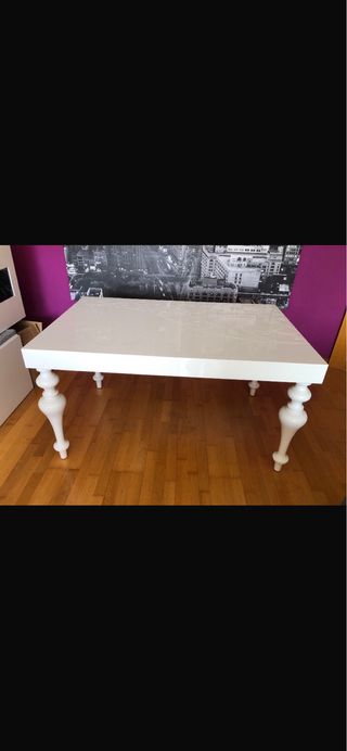 Mesa extensible con un diseño moderno y elegante. Abierta llega a 230 cm de largo. - Acabado en blanco. - Apenas tiene un año de uso - Se vende por no usar extendida, por cambio a un escritorio sencillo -Se pueden enviar fotos y ver en Oviedo