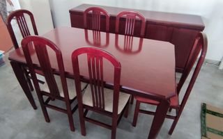 Mesa de salón extensible con 6 sillas. La mesa y las sillas están perfectas ( las líneas de papel son para transporte y evitar que se arañe ) y son de caobilla. Medidas de la mesa: -95 cm de ancha -166 cm de larga -250cm (aproximadamente) de larga extendida También se puede vender por separado: -90€ las sillas (15€ cada una) -100€ la mesa -Precio algo negociable Preguntar por cualquier duda, sin compromiso.