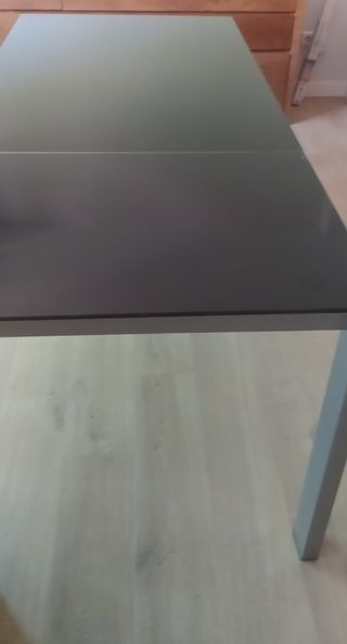 Mesa extensible con un diseño moderno y funcional. - Acabado en madera con detalles en negro. - Ampliable para mayor espacio. La compré por 550€ la vendo por este precio ya que me urge la venta por mudanza
