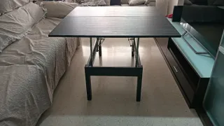 Mesa de salón extensible de Ikea. Ideal para espacios que necesitan flexibilidad. - Acabado en color negro y marrón. - Fabricada con materiales de madera y plástico.