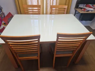 Mesa y 4 sillas con desgaste del uso diario, ideal para familias, es extensible, regalo cristal, No hago envíos