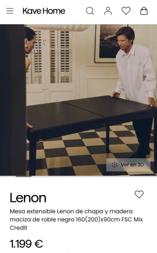 Mesa extensible Lenon de Kave Home, con un diseño moderno y funcional. - Acabado en chapa y madera maciza de roble negro. - Medidas: 160 cm (extensible a 200 cm) x 90 cm. - Certificación FSC Mix Credit.