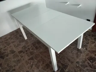 Mesa extensible de IKEA en muy buen estado, cuidada y lista para usar. Es ideal para pisos pequeños o para cuando vienen invitados, ya que se puede ampliar fácilmente. Medidas: Cerrada: 80 x 70 cm Abierta: 120 x 70 cm Altura: 75 cm Modelo descatalogado, difícil de encontrar. Su diseño combina bien con distintos estilos de decoración. Se puede entregar montada o desmontada (como prefieras).