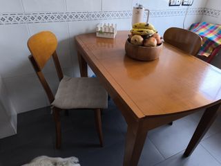 mesa de pino extensible. Sillas tapizadas