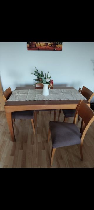 Mesa extensible comedor y 4 sillas madera