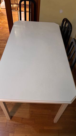 ☎️680*558*196 Mesa de comedor extensible de madera nueva a estrenar, ideal para salón o comedor. Diseño moderno y resistente, perfecta para uso diario y reuniones familiares. Gracias a su sistema extensible, se adapta fácilmente a más comensales. Disponible con o sin sillas, según necesidad. 💰 Precio: 174 € con sillas 90 € sin sillas 📐 Medidas: Largo: 138 cm (cerrada) / 178 cm (extendida) Ancho: 80 cm Alto: 79 cm ✔️ Producto nuevo ✔️ Mesa extensible práctica y funcional ✔️ Estilo moderno en madera ✔️ Ideal para pisos y salones