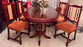 Mesa y 6 sillas de comedor de madera