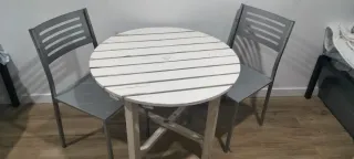 Mesa teka jardin, en buen estado, regalo las sillas