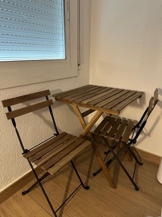 NUEVA sin estrenar. Se recoge plegada en Gijón. Mesa de exterior TÄRNÖ de IKEA, perfecta para tu balcón o terraza. Su diseño plegable facilita su almacenamiento. - Tablero de listones de madera. - Estructura metálica resistente.
