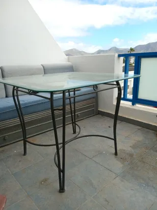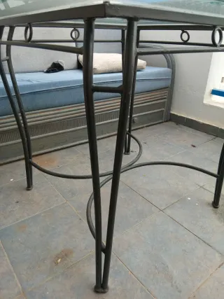 Elegante conjunto de mesa con estructura de forja y tapa de cristal. Seria para recoger en sanlucar de barrameda - Diseño moderno y resistente. - Patas de forja con un toque decorativo.