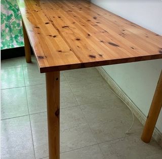 Mesa de madera para el jardín,de tipo rectangular.Falta darle una mano de barniz y queda genial.