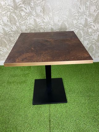 Medidas: 70x70x74 alto. desde 120€+iva El pregio varía según las medidas. Tablero de melamina de 3cm de grosor, también disponible en 1,9 cm de grosor, el diseño es de color marrón wengue. Disponible en cualquier medida, con pie de color negro, dorado o en color óxido. No vendemos a particulares solo profesionales. Tenemos catalogo y un showroom en Sabadell, donde atendemos con cita previa. Hacemos envíos a toda España. palabras clave: sofá hosteleria, sofá restaurante, sofá discoteca, sofá a medida, hosteleria segunda mano, mobiliario segunda mano, inoxidable, mobiliario inoxidable, mesas hosteleria, sofás a medida, mesas restaurante, mesas de madera, mesas de marmol, sillas tapizadas, sillas hosteleria, sillas restaurante, sillas de madera, jardín vertical, sillas de oficina, sillas de segunda mano, silla reclinable
