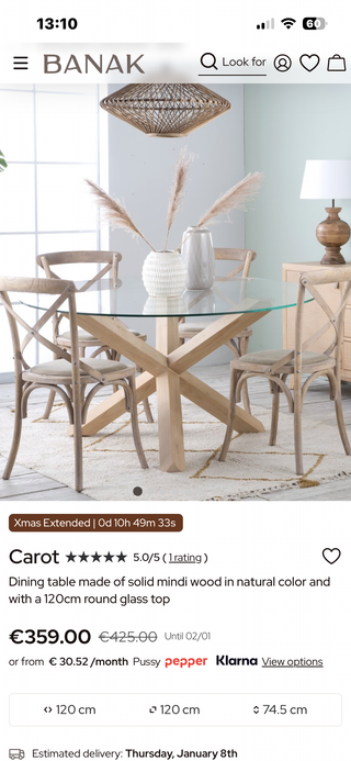 Conjunto de muebles de jardín de 6 plazas: Sofá rinconera de 6 plazas y 1 mesa Cojines: Con funda resistente y tejida en estructura Tablero (mesa) de madera artificial: Aspecto de madera natural, no requiere mantenimiento Ratán sintético: Mimbre sintético, resistente a las inclemencias meteorológicas Estructura de acero: Robusta y resistente Funda lavable: La funda del cojín es extraíble y se puede lavar a 30ºC Añado dos sillas de mimbre de los mismos tonos Tengo factura de compra. Fue comprado en julio de 2025. Precio de todo en tienda = 600€