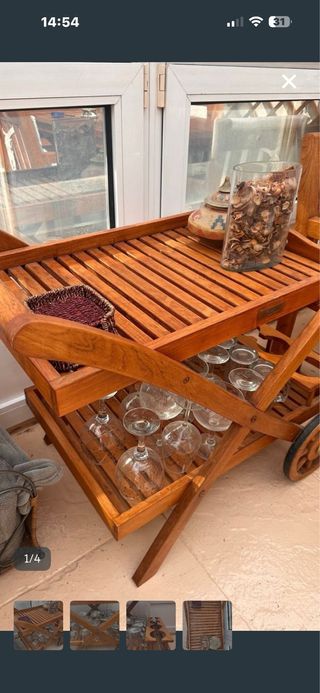 Carrito de madera para terraza, mesa centro y mesa