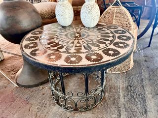 Preciosa mesa auxiliar de estilo marroquí. Ideal para interior o exterior. - Superficie de cerámica con un diseño único. - Estructura de hierro resistente y decorativa. - Perfecta para cualquier espacio.
