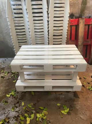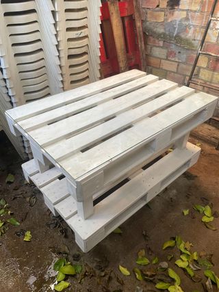Mesa hecha a mano con palets de madera. - Diseño rústico y único. - Ideal para espacios interiores o exteriores. Hay 30 unidades