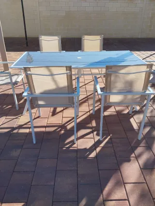 Mesa y 4 sillas terraza - metal y cristal
