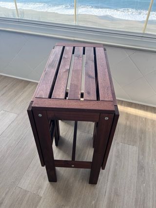Mesa extensible de madera, ideal para tu terraza o balcón de Ikea, ya descatalogada. En perfecto estado, se ha usado muy poco y siempre en balcon cerrado. Cerrado mide 39 cm largo por 70 de ancho