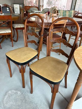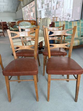 ✅ Ref. B11103 Juego formado por seis sillas fabricadas en madera de buena calidad de color marrón claro con un asiento de color negro. Se trata de seis sillas que tienen un bonito respaldo formado por la unión de listones de madera y son perfectas para colocarlas alrededor de una mesa en un salón comedor. Como se puede observar en las fotografías se encuentran en buenas condiciones. Financia tus compras de forma inmediata. Visita nuestra web Cardiffstore o nuestra tienda en Baza (C/ Marte, 6 Pol. Ind. La Noria); Llámanos o envíanos un WhatsApp al número de nuestro perfil. Envíos a toda España.
