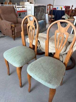 ✅ Ref. B11101 Pareja formada por dos sillas fabricadas en madera de buena calidad de color marrón claro con un asiento de color verde. Se trata de dos sillas que tienen un bonito respaldo formado por la unión de listones de madera y son perfectas para colocarlas alrededor de una mesa en un salón comedor. Como se puede observar en las fotografías se encuentran en buenas condiciones. Financia tus compras de forma inmediata. Visita nuestra web Cardiffstore o nuestra tienda en Baza (C/ Marte, 6 Pol. Ind. La Noria); Llámanos o envíanos un WhatsApp al número de nuestro perfil. Envíos a toda España.