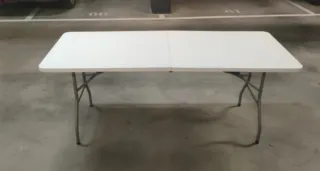 Mesa plegable de gran tamaño, ideal para eventos o uso diario. - Superficie de plástico resistente. - Patas de metal plegables para fácil almacenamiento. - Asa central para transporte. Varias unidades.