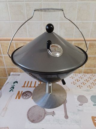 Plancha de mesa portátil para barbacoa. - Diseño compacto y fácil de transportar. - Ideal para asar todo tipo de carne. - Apta para uso en interiores y exteriores.