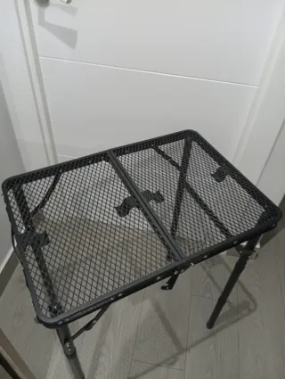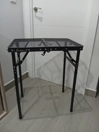 Mesa de camping plegable, ideal para llevar a tus salidas al aire libre. Su diseño permite un montaje y desmontaje rápido. La Altura de Anbte Pequeña Mesa Plegable Es Ajustable entre 23cm, 46cm y 70cm El Tablero de La Mesa Está Diseñado con Una Malla Metálica Recubierta Única Que Evita Que El Tablero de La Mesa Se Oxide o Se Deforme Debido al Agua Estancada. Y Reduce Las Manchas Superficiales, Que Se Pueden Quitar Fácilmente Simplemente Limpiando con Una Toalla de Papel Húmeda. Esta nueva, sin usar. - Superficie de rejilla metálica. - Patas ajustables en altura. - Estructura robusta.