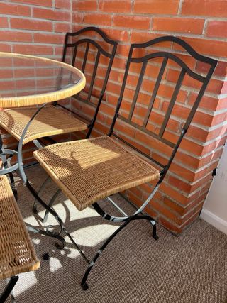 mesa de ratan y dos sillas