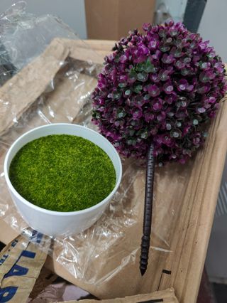 Maceta decorativa blanca con planta artificial tipo topiario. Diseño moderno y minimalista, ideal para salón, despacho, entrada u oficina. No necesita riego ni mantenimiento, siempre luce perfecta. Material resistente, aspecto muy realista y compacto. Perfecta para dar un toque de color y estilo sin complicaciones. Tamaño manejable, fácil de colocar en estanterías, mesas o escritorios. En buen estado, tal como se ve en las fotos. Ideal para quien quiere decorar rápido y sin cuidados.